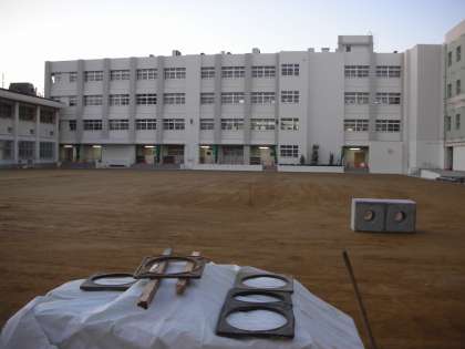 グラウンドには、新しい土が入り、整地されました。そろそろ仕上げの段階です。グラウンドが使えるようになる日が待ち遠しいですね。