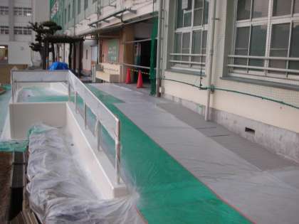 下は、家庭科調理室前の通路です。きれいになっています。早く歩きたいですね。
