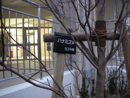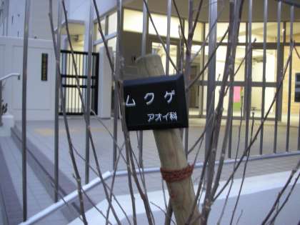 左から、ムクゲ、ハナミズキ、ハナカイドウです。ネームプレートがついています。