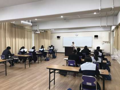今年度、3回目の検定実施です。今回は、南校舎が新しくなってから初めての実施で、1階多目的室でおこない、計15名の生徒が、自分で選んだ級の検定に挑戦しました。受検の様子は真剣そのもので、1時間、静まり返った中に筆記用具の音だけがひびいていました。結果は約1か月後に学校に届きますので、受検したみなさんは楽しみに待っていてください。