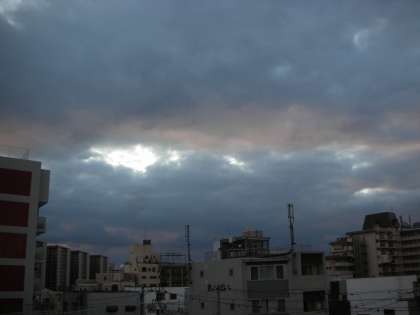 写真は、新校舎4階から見た東の空です。分厚い雲が覆っています。天気予報では、曇り時々晴れになっています。最高気温は、10度です。風が強い分、体感温度はもっと低く感じると思います。どうぞ、気を付けてお過ごしください。