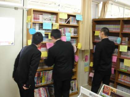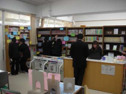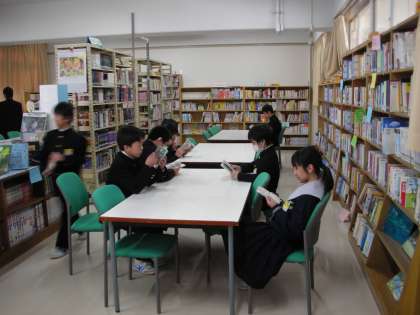 お昼休みには、図書室が開館しています。好きな本を読むために、生徒が図書室にやってきます。