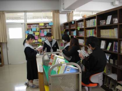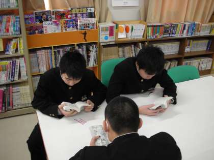 生徒の皆さん、お昼休みには、ぜひ図書室で本を読みましょう。