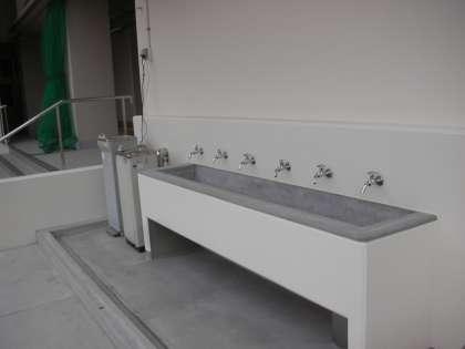 新校舎技術工作室近くの水道です。 ウオータークーラーも移設されました。