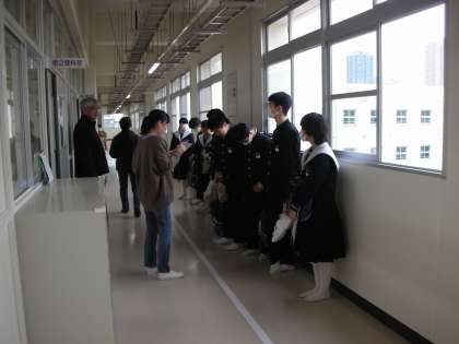 出発前に、廊下でもう一度書類のチェックを受けています。