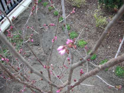 この桜の木は小ぶりですが、つぼみは膨らんでいます。今のも花を咲かせようとしているようです。