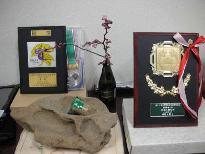 先日の大阪府中学校新聞発表会で表彰された『朝日新聞社賞』の盾が飾られています。