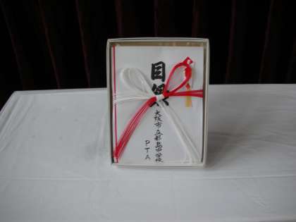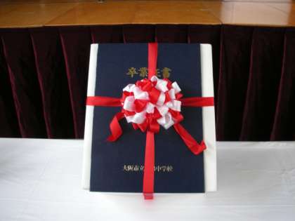 今回、記念品の贈呈は省略しました。卒業証書ファイルと印鑑がPTAより、全生徒に贈られました。