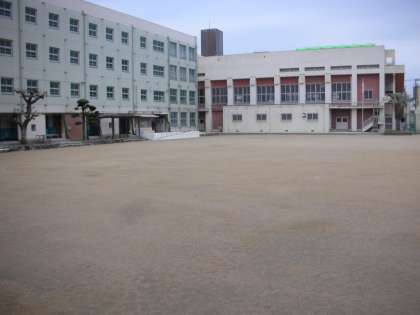 手前に広がるグラウンドは、体育科の先生を中心に、『いつ生徒たちが来ても良いように』日々、グラウンド整備をしています。