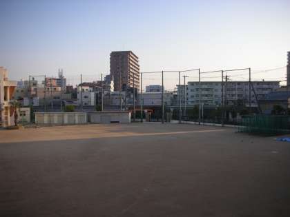 新校舎2階から見た朝のグラウンドです。