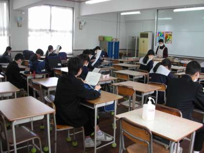 教室にはアルコールを置いて、消毒ができるようにしています。