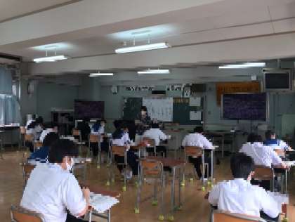 3年生登校日3時間授業の様子です。3密を避け授業を行いました。