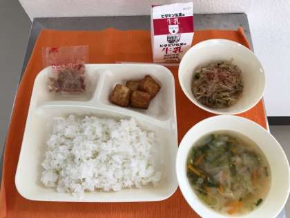 本日の給食です。今日もおいしくいただきました。