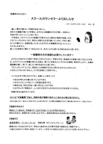 スクールカウンセラーだより