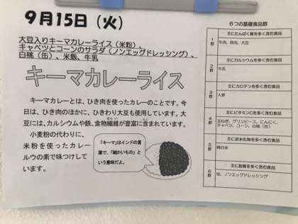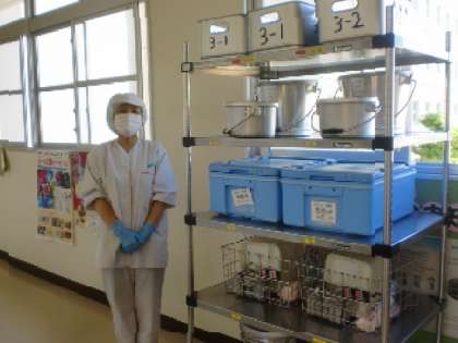 学校の様子。いつも生徒たちの給食の衛生管理や配膳にかかわるきめ細やかな業務にとても感謝しています。配膳員の皆さんありがとうございます。
