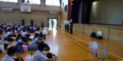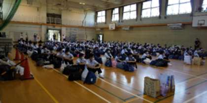 無事に学校に戻ってきました。体育館で帰校式を終え下校します。