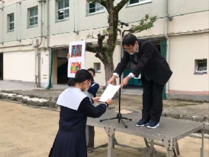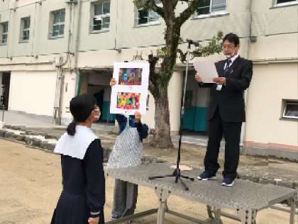 学校の様子(全校集会・表彰)総合文化祭美術展の表彰がありました。