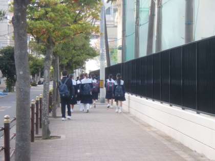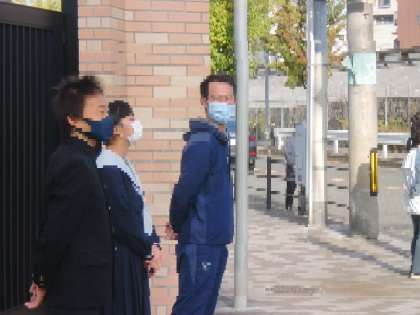 学校の様子(登校時の安全指導の様子)西住宅集会所前JR高架橋前