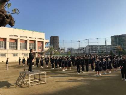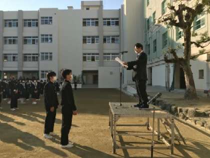 学校の様子(全校集会)「やさしく、深く、面白く」学ぼうとの話がありました。