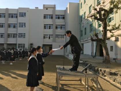 その後、ハンドクラフト部が、総合文化祭の優秀作品の表彰やポスター原画の表彰がありました。おめでとう。