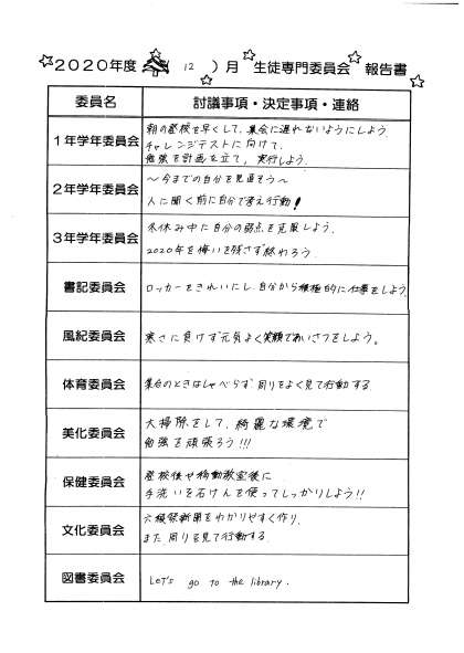 学校の様子(全校集会)生徒専門委員会報告