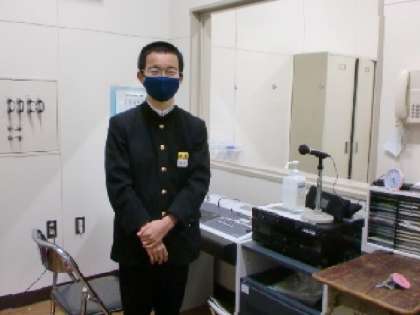 学校の様子(全校集会)本日は、雨が続いたため運動場の状態が悪く放送での全校集会となりました。会長の渡邉さんは、やや緊張気味だそうですが落ち着いて放送集会をしてくれました。校長講話は、感染症防止対策とともに、3年生に向けて「焦らない、あきらめない」など激励の言葉とともに健闘を祈る講話でした。古川先生のお話もありました。