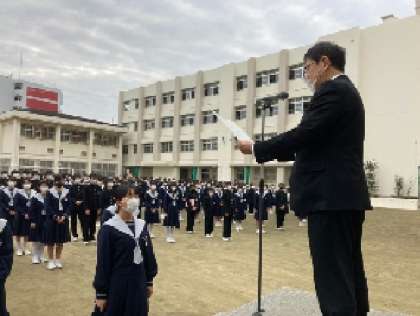 学校の様子(全校集会・大阪府・大阪市選挙管理員会ポスター表彰)大阪府選挙管理員会から「明るい選挙啓発ポスター」の入選と大阪市選挙管理員会から「大阪市明るくきれいな選挙推進ポスター」の入選表彰のダブル表彰の杉井さん。そして青山さんは、「大阪市明るくきれいな選挙推進ポスター」の特選表彰をいただきました。「大阪市明るくきれいな選挙推進ポスター」入選をいただいた坂東さん、村上さん、中西さん。皆さんおめでとうございます。