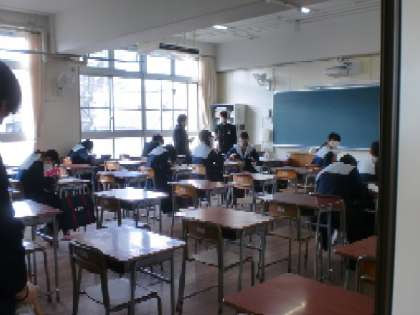 学校の様子 本日は、公立高校一般選抜入試です。朝早くに駅に向かう3年生に会いました。落ち着いて試験に臨んでほしいと思います。登校している3年生は、試験で頑張っているクラスメートに応援のメッセージ作っていました。その願いはきっとみんなに届いていると思います。