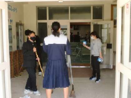学校の様子 明日の卒業式のために在校生で清掃をしました。