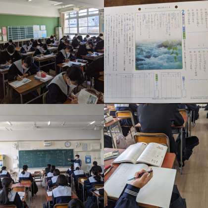 【国語】『岩が』の単元のプリントをしています。みんな真剣に取り組んでいました。(3年2組)