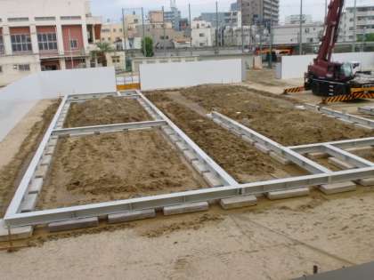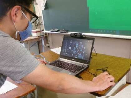 学校の様子(オンライン)2期工事のための仮設校舎の建設が進んでいます。