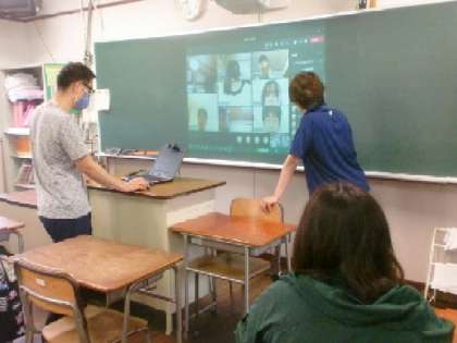 学校の様子(オンライン朝礼)学校の方は本日は1クラスだけがつながらない状態となりましたが、少し遅らせ、時間をおいて8時33分にすれば無事につながりました。生徒機から担任の先生につながらないトラブルも先生方で対処して無事つながりました。ネットの環境やたくさんの人数でアクセスすると負荷がかかりつながらなくなったりするようです。その後無事につながりました。良かったです。