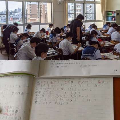 【数学】文字式の計算問題です。2人の先生が質問にまわります。わからない所があれば積極的に聞いてください。(2組)