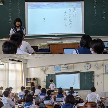 【国語】自分で考えた俳句を発表します。背景の写真やレイアウトなども考えます。(1組)