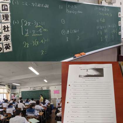 【数学】連立方程式の問題を解いています。文章問題はまわりと相談しながら解きます。(2組)