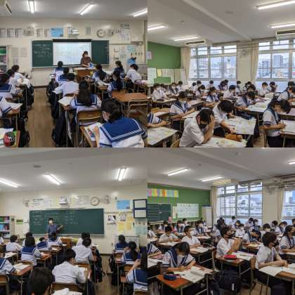 【英語】先生の説明の後ノートづくりをしています。(1組)