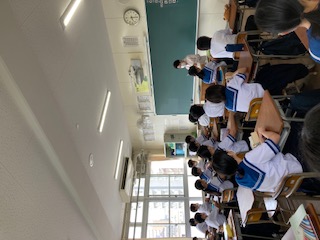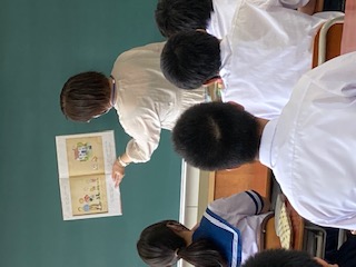 朝の学活の時間に絵本の読み聞かせの仕方を教えてもらっています。