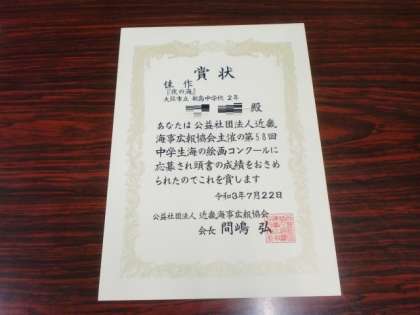 学校の様子(海の絵画コンクール表彰)