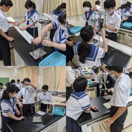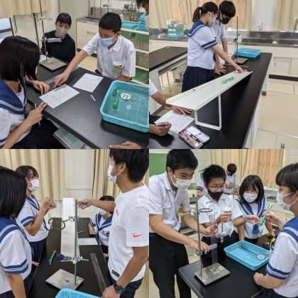 【理科】動滑車の糸を引く距離を測定しています。(3組)