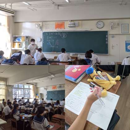 【数学】グラフの特徴について学んでいます。放物線を描くグラフは、上に開いているのと下に開いている形があります。(1組)