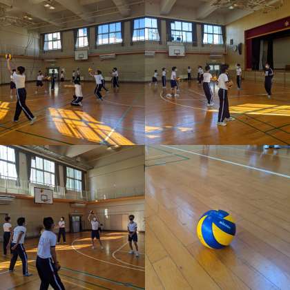 男子はバレーボールをしています。3年生がトスしやすいボールを1年生に投げて練習をしています。上級生のやさしさが伝わってきました。