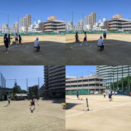 女子は3年生がテニスで、力強くボールを打ち込んでいました。1年生はハンドボール投げの測定です。