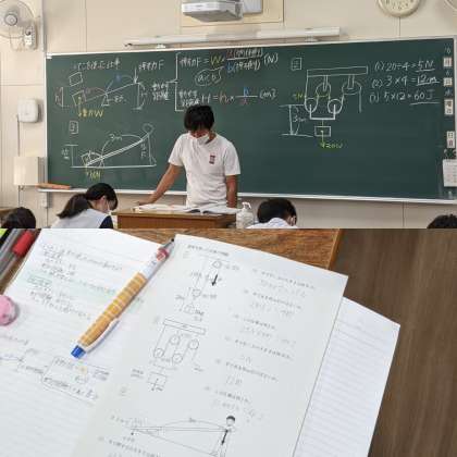 【理科】道具を使った仕事の問題をしています。(3組)