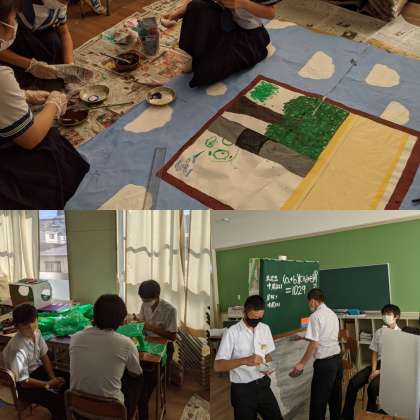 各学年が文化行事の取り組みをおこなっています。1年生は合唱コンクールに向けてのリハーサルをしています。2,3年生は六稜祭に向けての取り組みです。各場所で、セリフ合わせ、内容の打ち合わせ、大道具・小道具の制作、劇の選曲、ダンスの練習、衣装の作成などをおこなっています。