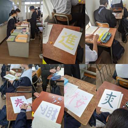 【国語】ちぎり字を作成しています。それぞれが考えた漢字一字をちぎって作っていきます。(1組)