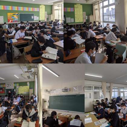 【社会】ペアワークで時代の流れを説明しています。(3組)