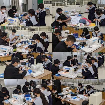 【家庭】ペンケースを作っています。針に糸を通すのに苦戦しています。(1組)