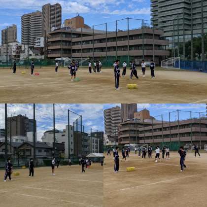 男子は第二グランドでテニスです。思い切ってラケットを振ってボールを飛ばすのが気持ちよさそうでした。(1、3組)