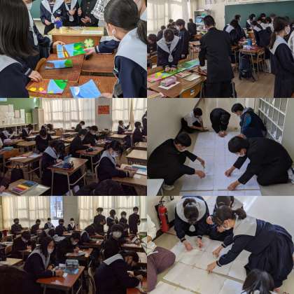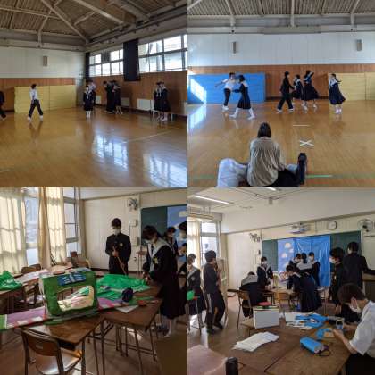 六稜祭に向けての取り組みをおこなっています。1年生はモザイク画で、それぞれが描いた絵を貼り合わせていきます。どんな絵が出来上がるのか楽しみです。2、3年生は劇の最終調整に入っています。役者はセリフ合わせ、ダンスの練習、大道具・小道具・衣装も完成していきます。当日が楽しみです。