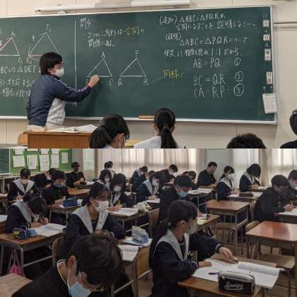 【数学】合同の証明を解いていました。2年生の復習です。これから相似の証明に入っていきます。(3組)